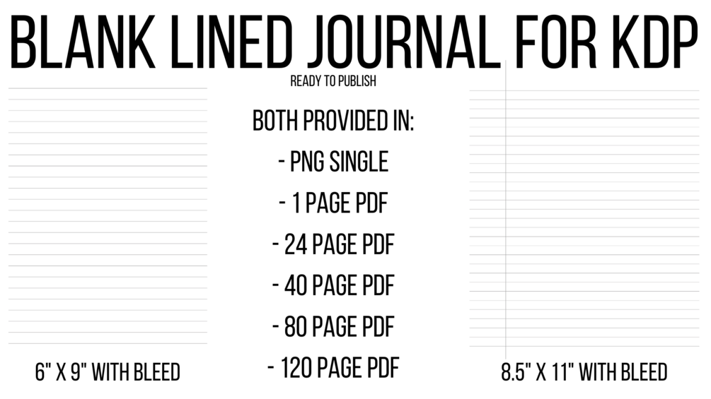 Blank Lines Journal for KDP - 2 Sizes - 8.5" x 11" - 6" x 9"